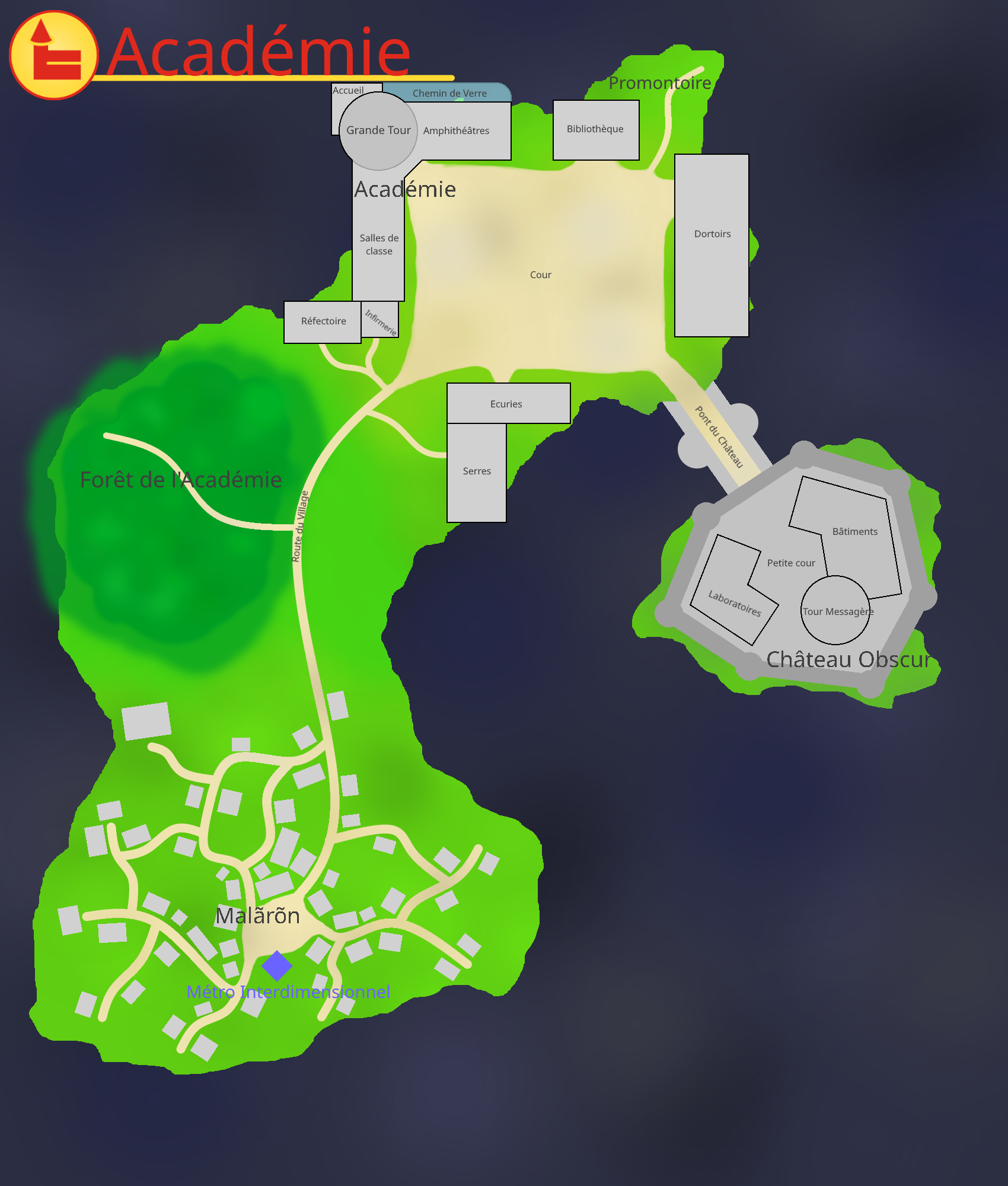 Ci-suivent les plans de l'Académie et du Château Obscur :